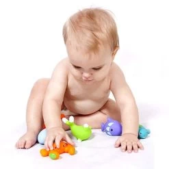 Quel bonheur de jouer dans le bain ! Et si en plus on peut arroser maman ou papa avec ces 6 aspergeurs de bain ! Filet de rangement inclus. Dès 6 mois.