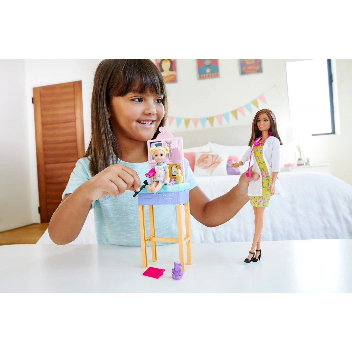 Amuse-toi à jouer au Docteur avec le Coffret Barbie Docteure Brune de Mattel et soigne ta petite patiente !