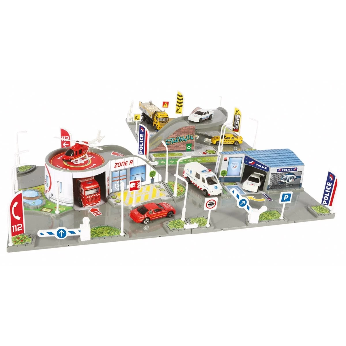 Ce circuit 3D modulable de John World comprend : 3 plaques avec circuit modulable et interchangeable, 1 lot d’accessoires et de panneaux de signalisation, 1 voiture. Votre enfant va pouvoir jouer avec ses petites voitures et imaginer plein d’histoires.