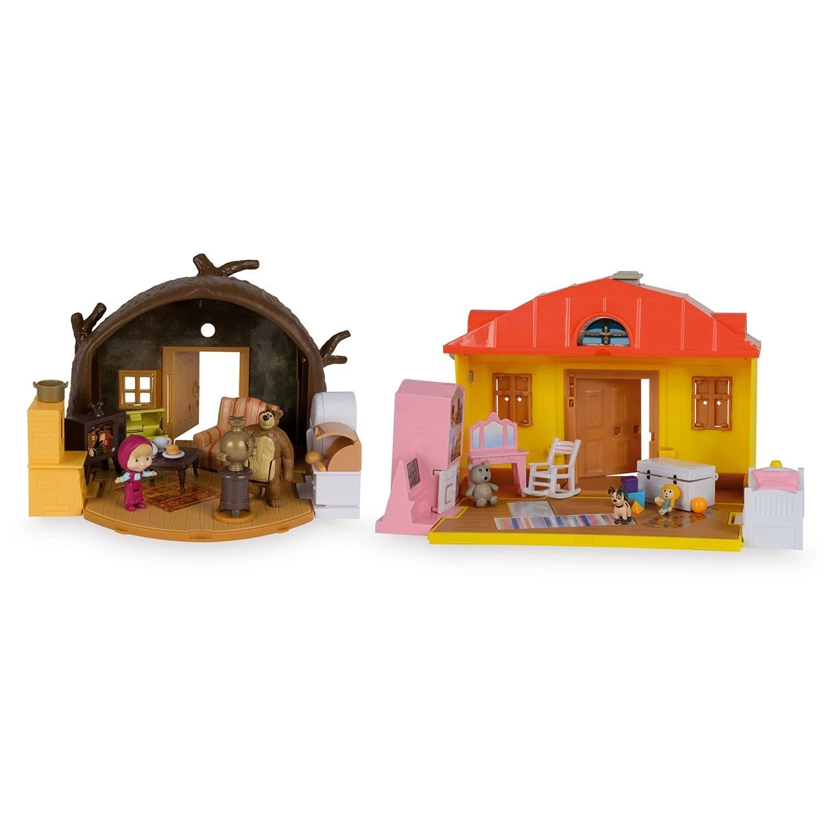 Plonge dans l’univers de Masha et Michka avec la hutte de Michka et la maison de Masha ! Tu auras vraiment l’impression d’y être car elles représentent parfaitement l’ambiance du dessin animé ! Tu pourras reproduire les histoires de tes héros préférés avec les 2 figurines articulées Masha et Michka incluses !