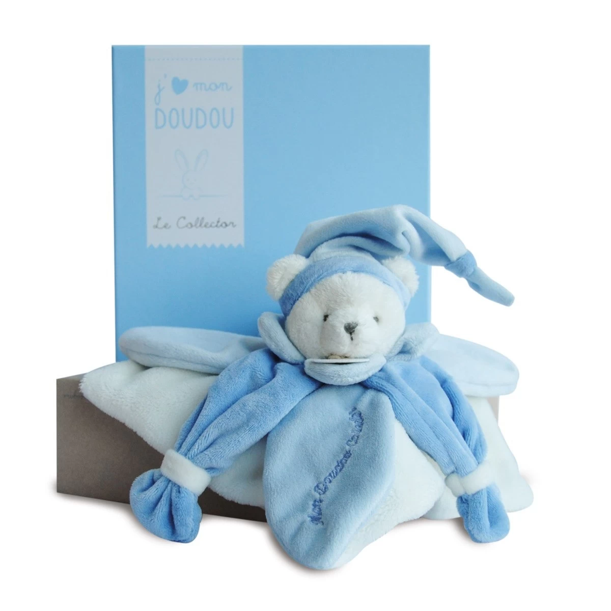 Tout doux et à croquer, ce Doudou plat Ours Collector Bleu J’aime mon Doudou de Doudou et Compagnie est le compagnon idéal pour votre bébé. Au moment de dormir, ce Doudou rassure votre enfant qui lui fait plein de câlins.