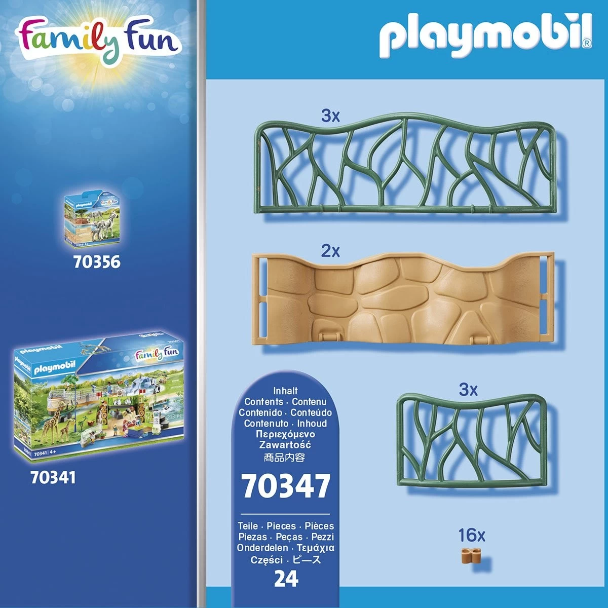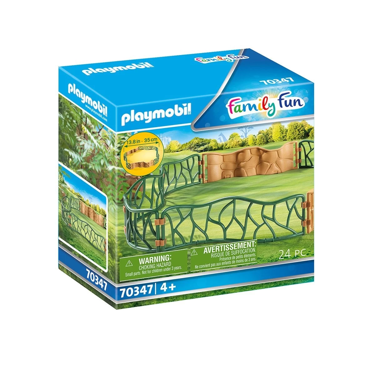 Les éléments de cloison peuvent être assemblés individuellement pour former un grand cercle ou deux petits cercles. L’Enclos peut être combiné avec la Ref. 70341 Parc Animalier.