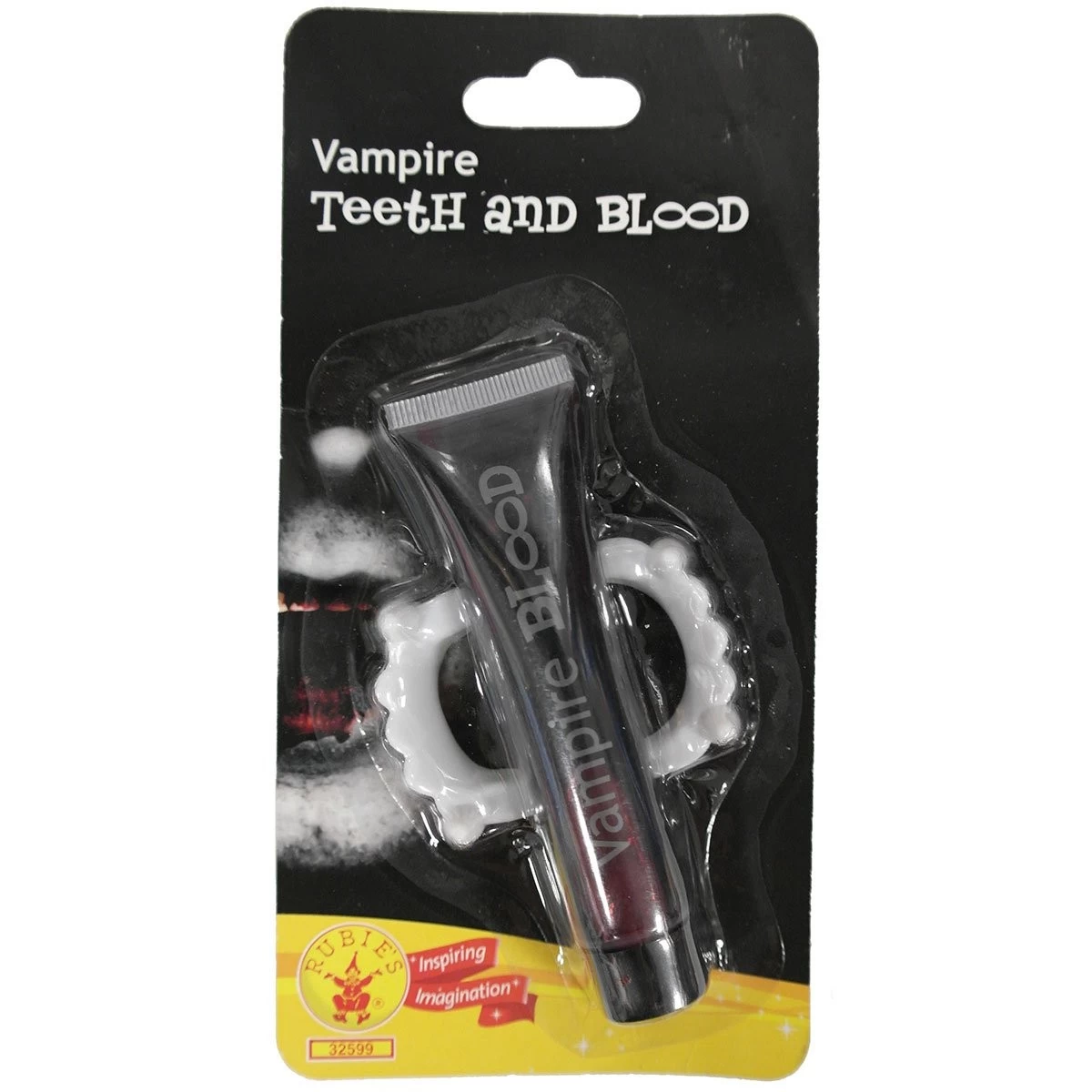 Pour vous déguiser en vampire, pensez au Faux Sang et Dentier pour Adulte de la marque Rubie’s.
