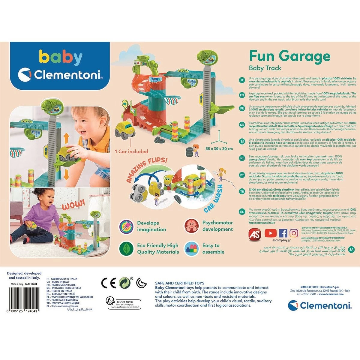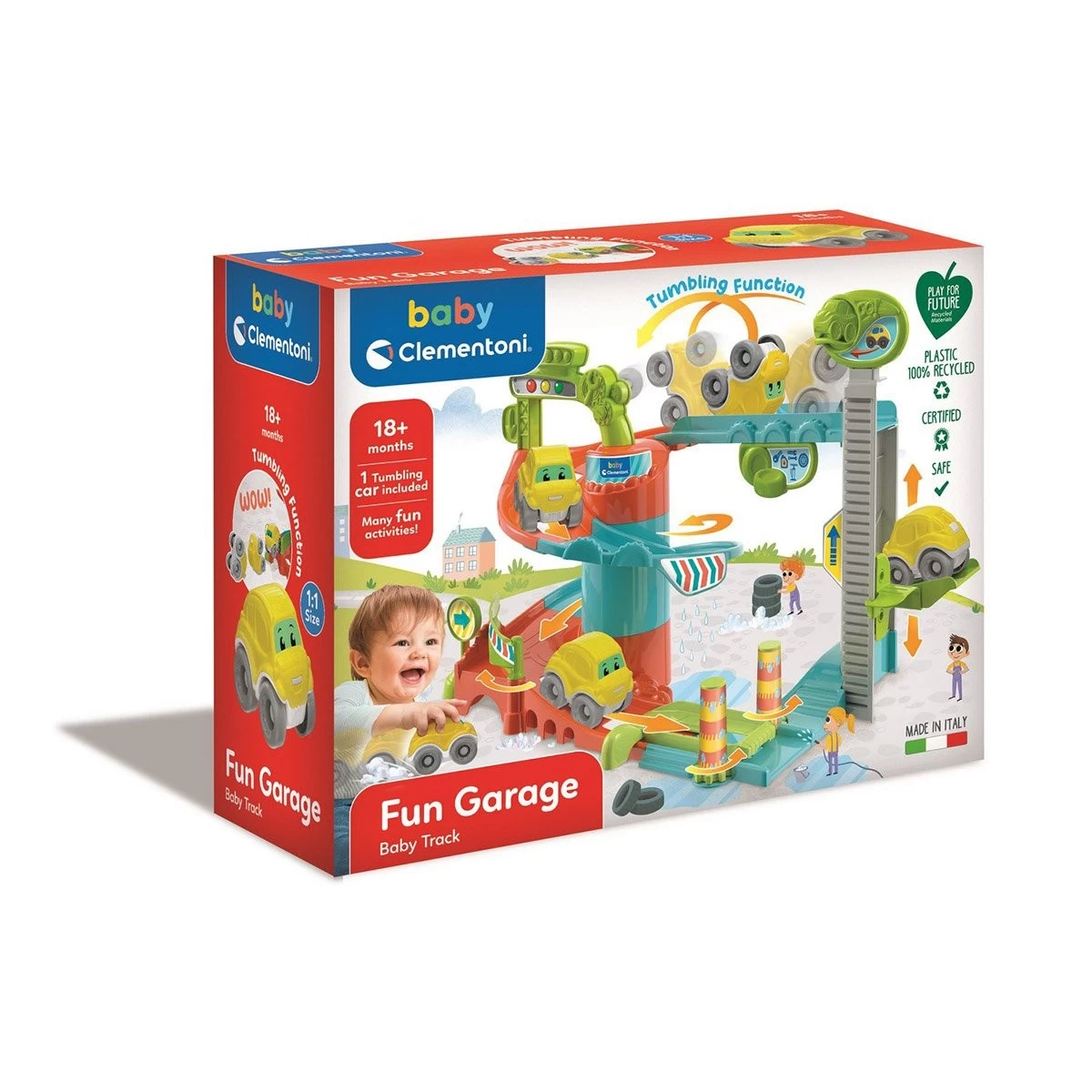 Le Fun Garage de Clementoni est un garage rempli d’activités mécaniques pour un plaisir sans fin en faisant glisser la voiture de haut en bas le long du parcours !