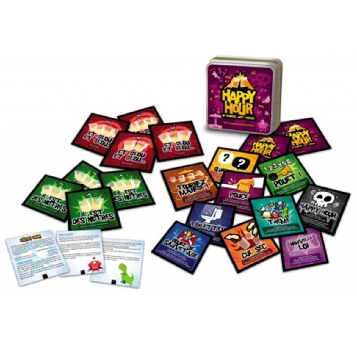 Et si par malheur, vous tirez la carte « Happy Hour », vous perdez la partie et devez boire cul sec le verre central… mais ce sont les autres joueurs qui en choisissent le contenu !