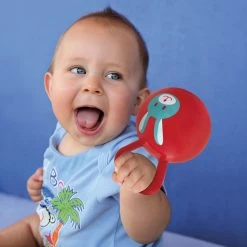 Hochet en forme de balle, en plastique doux et avec un petit grelot harmonieux. Soulage également les gencives de bébé.