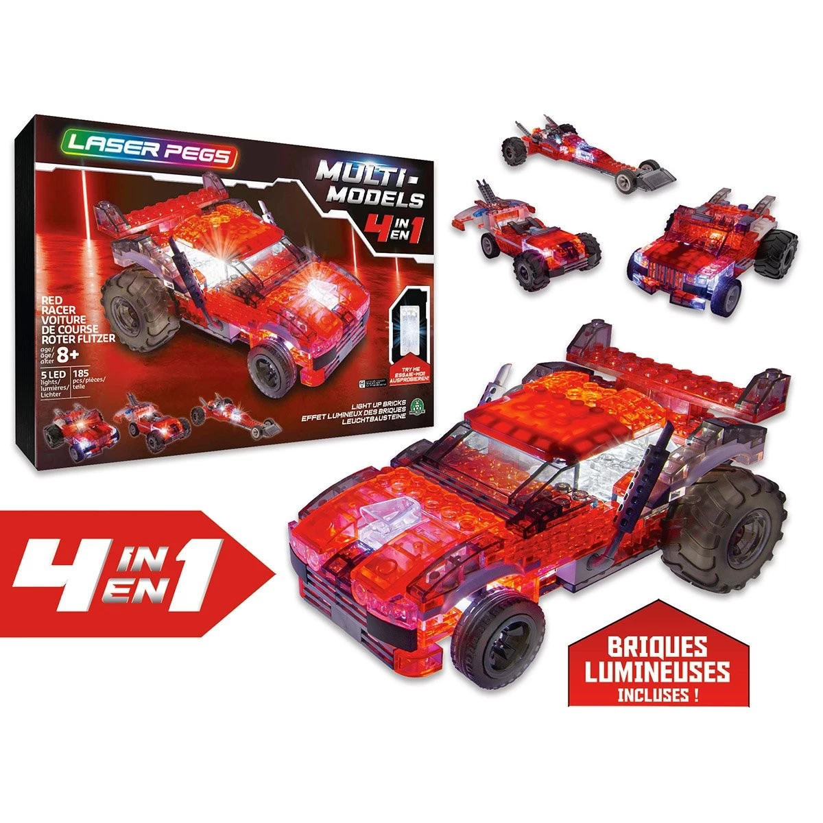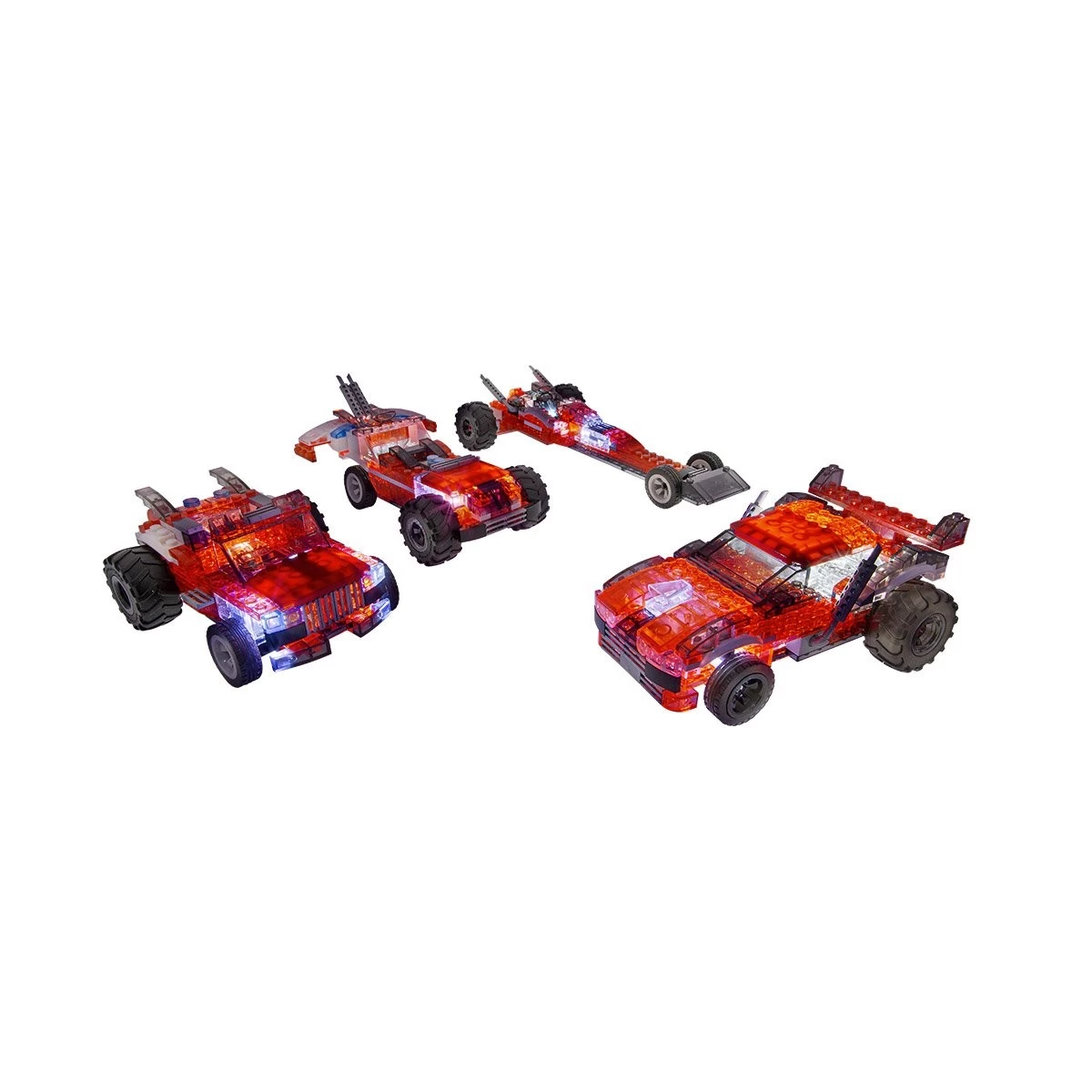 Ce coffret contient 185 pièces pour construire 4 modèles de voitures de courses ! Briques lumineuses incluses.
