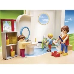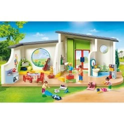 Le centre de loisirs Playmobil City Life 70280 est équipé d’une table pour enfants, de chaises, d’un espace jeux, d’une cuisine et de sanitaires. La sonnette fonctionne et comprend une borne extérieure lumineuse. Peut être combiné avec la réf. 70282 Espace crèche pour bébés.