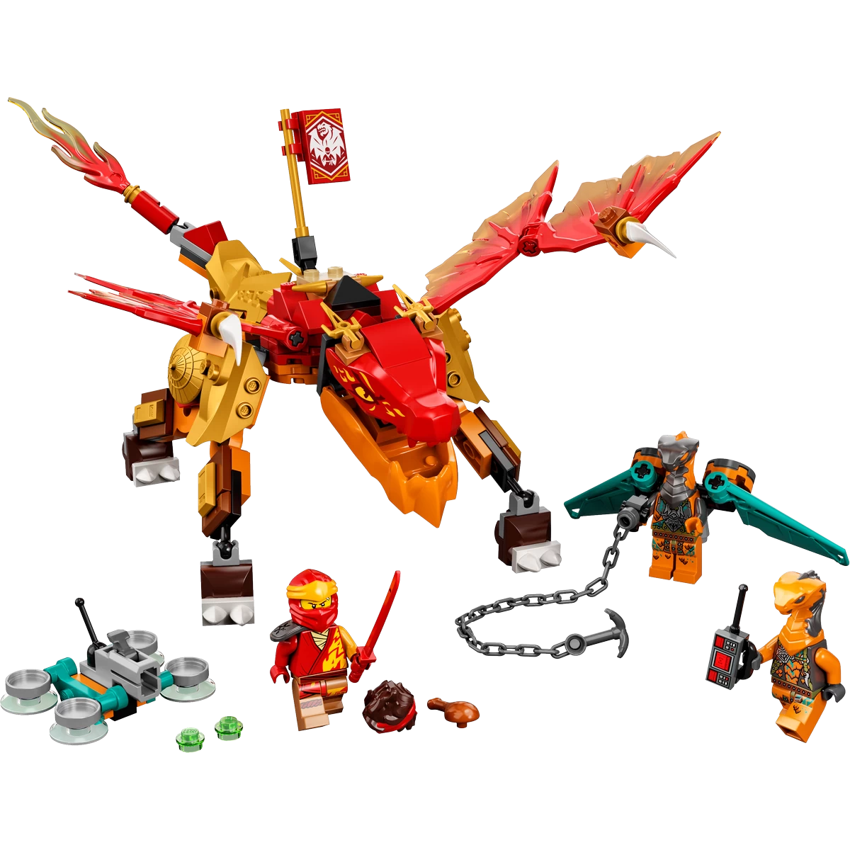 Les enfants de 6 ans et plus ont tout le nécessaire pour vivre des aventures ninjas pleines d’action avec Le Dragon de Feu de Kai – Évolution Lego Ninjago 71762.