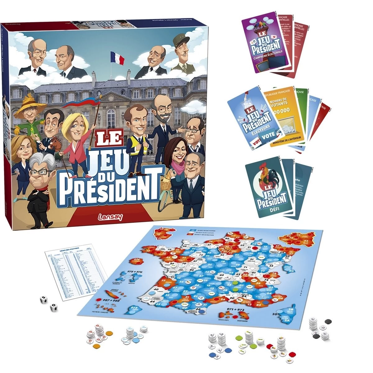 Le Jeu du Président de Lansay est un jeu ultra décalé, parodique et souvent très sarcastique, à jouer en famille ou entre amis !