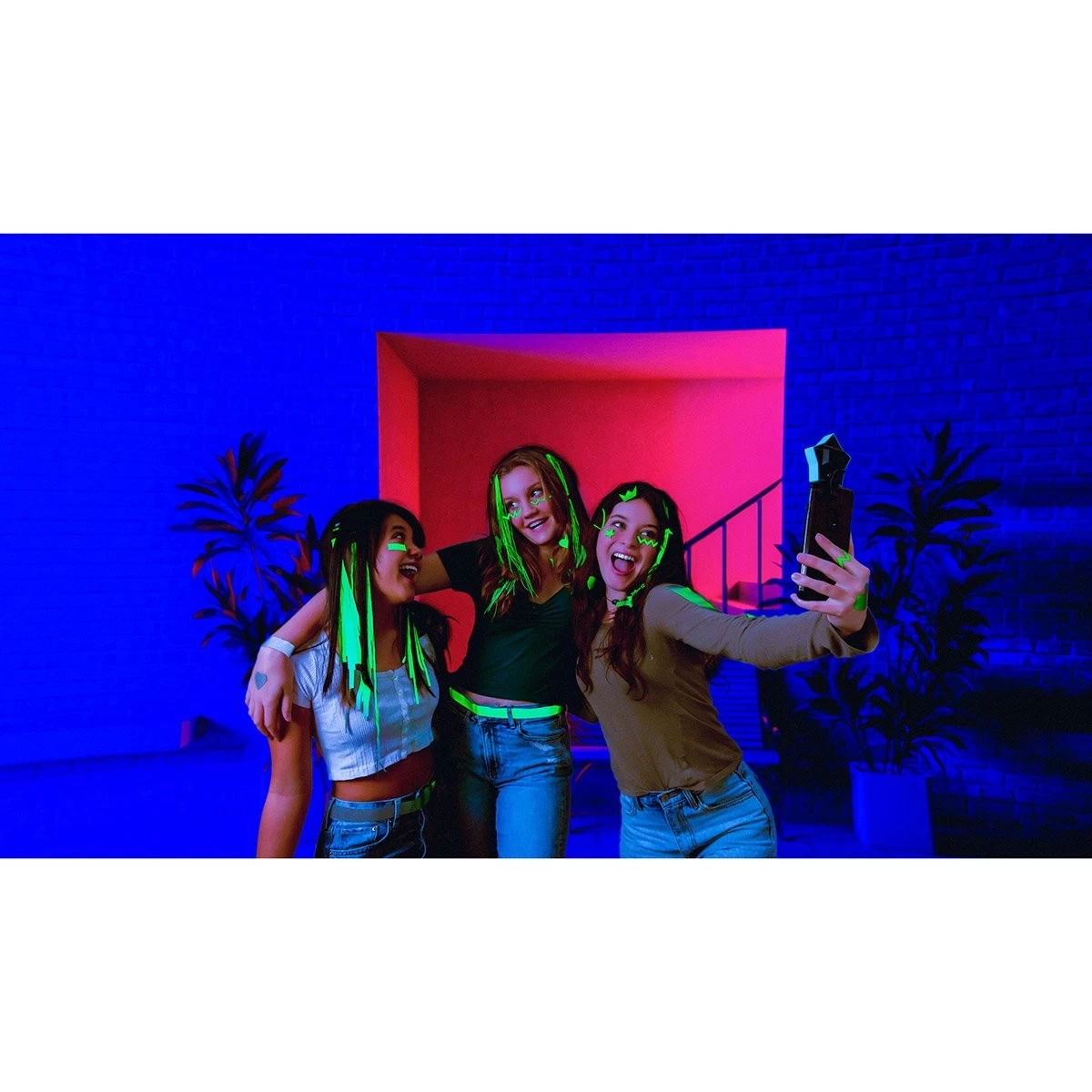 Crée tes propres accessoires réfléchissants, mets-les puis clipse la pince lumineuse qui s’adapte à tous les appareils (smartphone, tablette, ordinateur). Waouh ! Tes accessoires brillent dans le noir ! 16 couleurs à sélectionner ou 4 modes de « changement de couleurs automatiques ». Danse, brille de toutes les couleurs et poste tes photos et vidéos sur les réseaux sociaux !