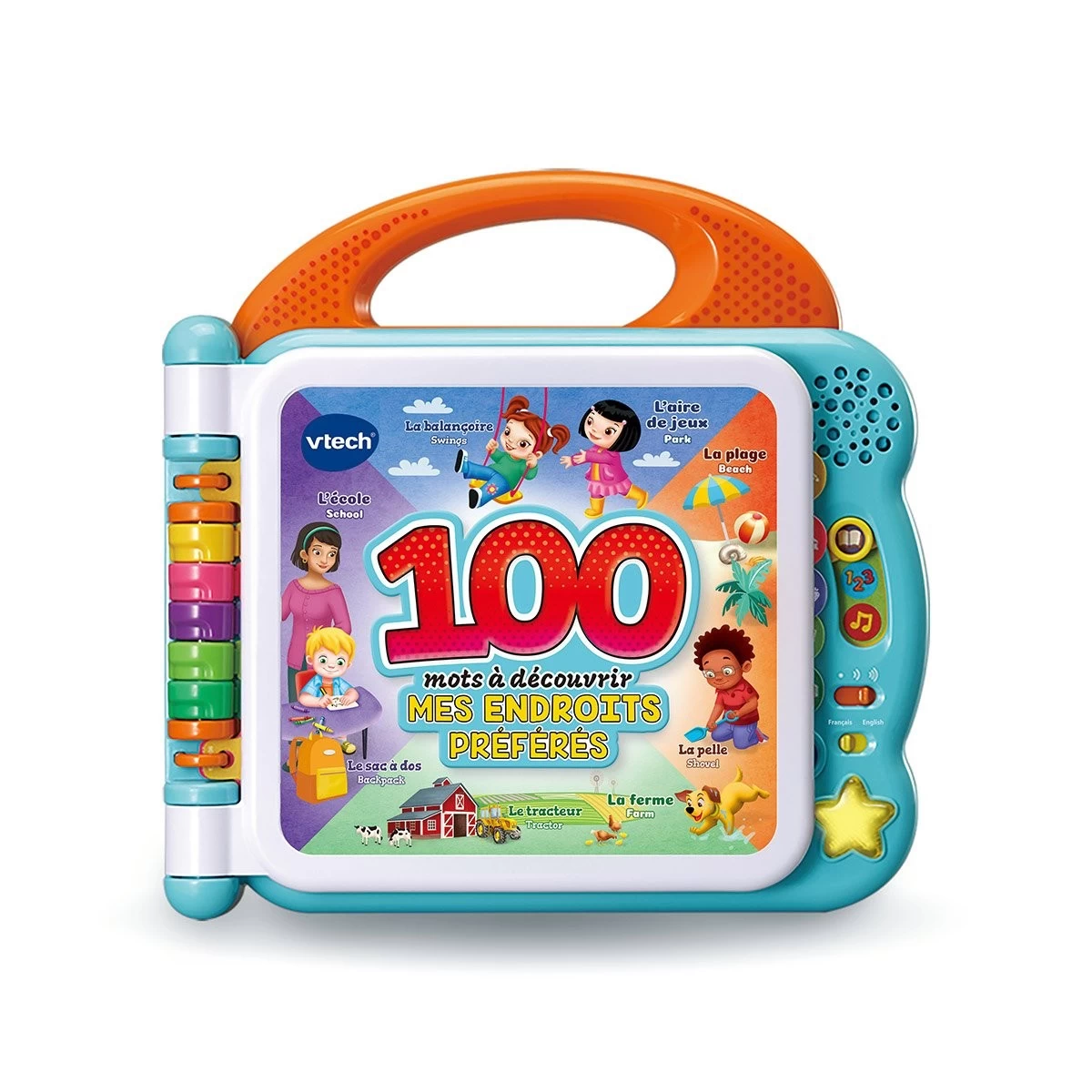 Mon Imagier Bilingue – Mes Endroits Préférés de Vtech est un imagier parlant et interactif pour que bébé découvre 100 mots de vocabulaire du quotidien.