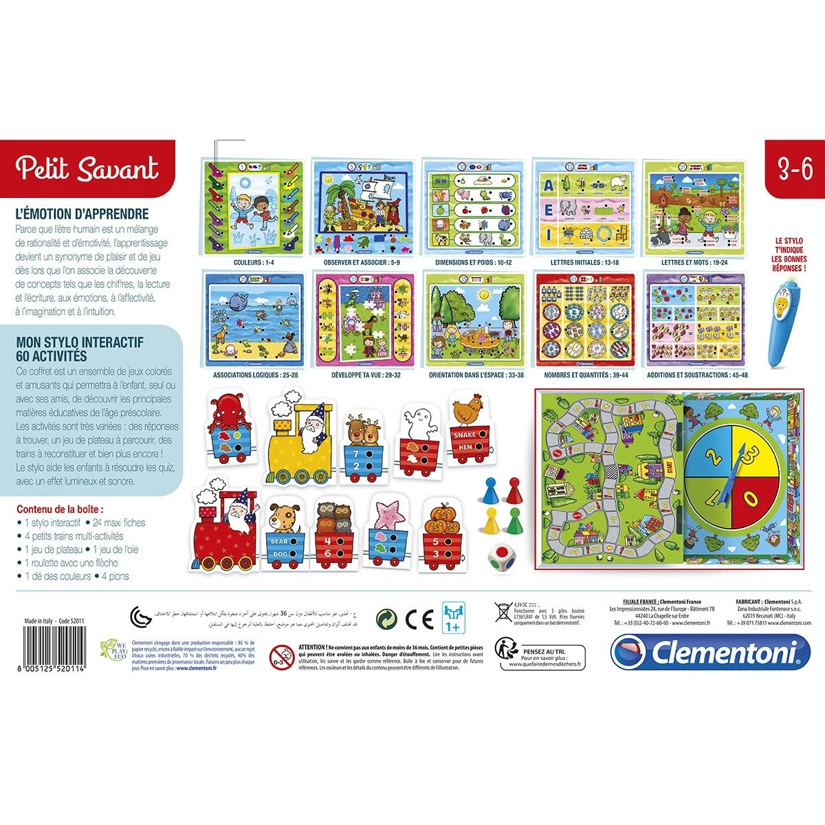 Contenu : 60 activités éducatives, 24 maxi fiches, un jeu de l’oie, un petit train coloré.