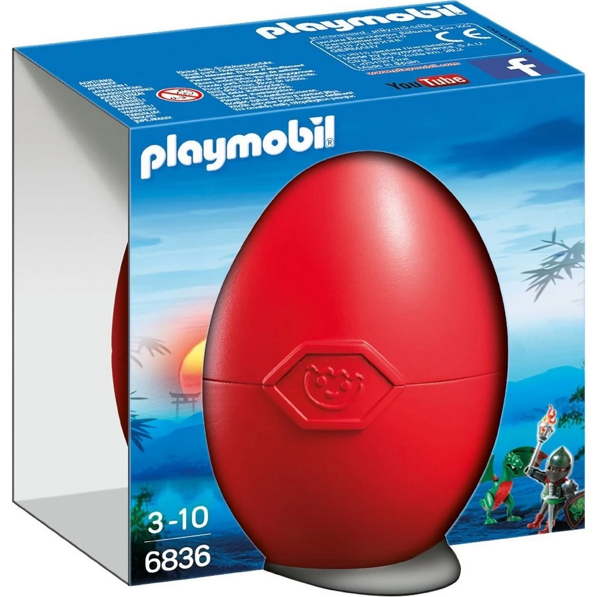 C’est quoi ce gros oeuf rouge ? Un oeuf qui abrite plein de surprises ! Sans tout dévoiler, sachez qu’il y a un valeureux chevalier dedans prêt à relever tous les défis et combattre des créatures comme ce dragon ! Le set Combattant dragon Vert Playmobil 6836 contient 1 personnage et des accessoires (bouclier, épée…). Une super idée cadeau dès Pâques !