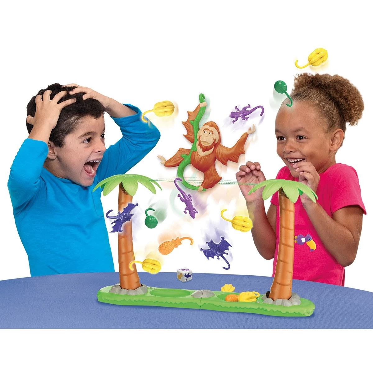 S’il tangue trop, il fait tout tomber ! À tour de rôle, les joueurs lancent le dé et découvrent ce qu’ils doivent accrocher à ORANG TANG : un fruit ou un animal, léger ou lourd ? Le hasard décide, mais il faut bien observer l’équilibre d’ORANG TANG suspendu à sa corde, pour choisir le meilleur endroit possible où disposer l’objet et garder cet animal malicieux en équilibre. Sinon TWANNNNG ! Il est éjecté de sa corde et envoie tout en l’air ! Et le joueur a perdu. Orang-tang de Megableu est un jeu de belle facture, plein de suspense et de surprise !