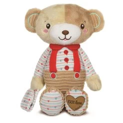 L’ours en peluche a une sangle pratique qui peut être utilisée pour attacher une tétine ou un hochet, afin qu’il puisse être transporté partout.