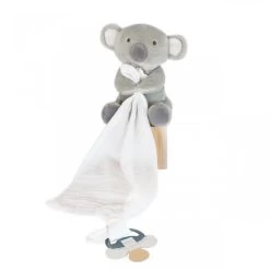 Le petit koala tient dans sa main un carré de lange souple en coton, pratique pour ne pas perdre sa sucette.