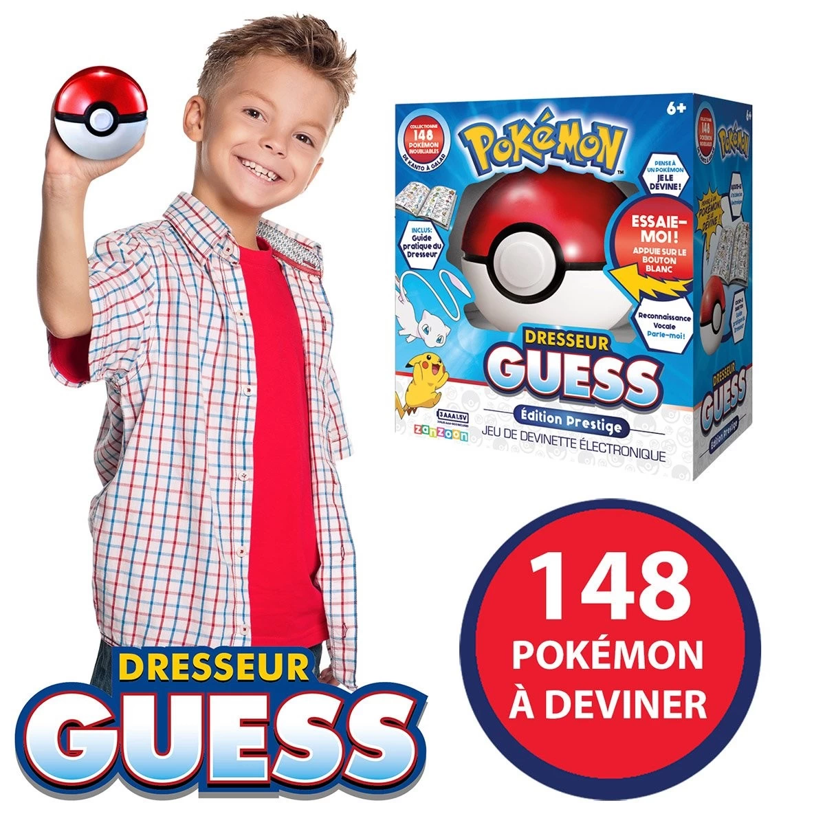 Dans cette édition Prestige du jeu de devinette électronique Pokémon – Dresseur Guess, il y a 151 Pokémon à faire découvrir. Vous ne les connaissez pas tous ? Pas de problème, le manuel inclus vous aidera, et vous pourrez alors cocher ceux que vous avez capturé ! Répondez aux questions de la Poké Ball et amusez-vous !