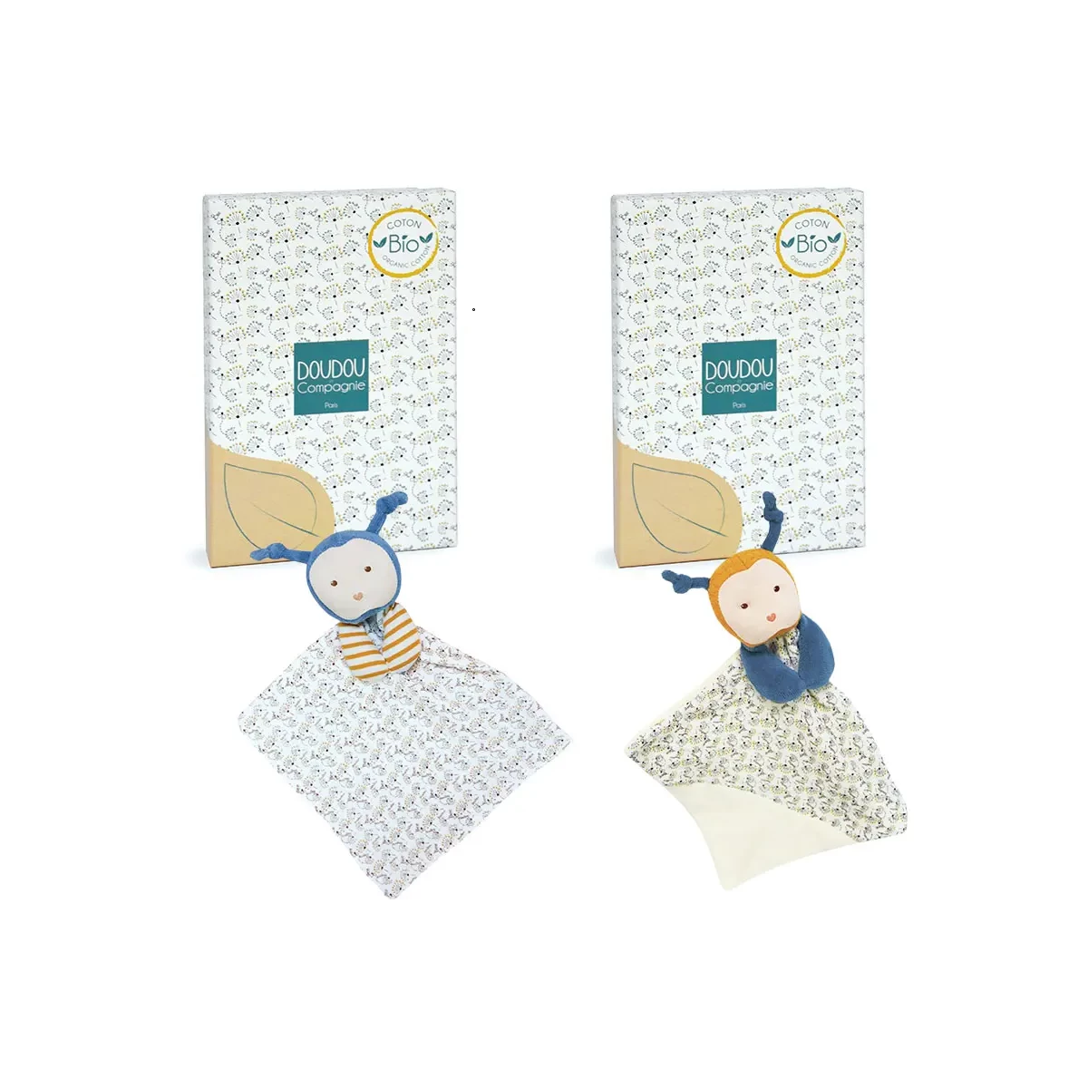 Ce magnifique doudou plat est composé d’un carré de coton entre les pattes de l’abeille : un doudou aux couleurs apaisantes et plein de tendresse !