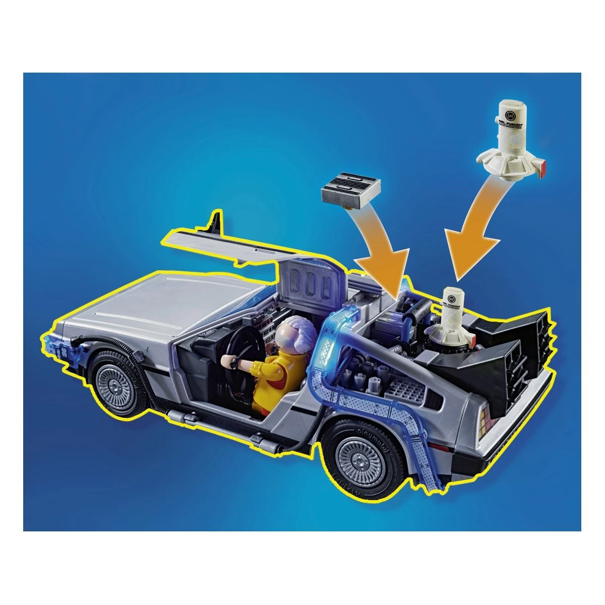 Le coffret Retour vers le futur – Course d’hoverboard Playmobil 70634 peut être combiné avec la DeLorean Retour vers le Futur (réf. 70317).