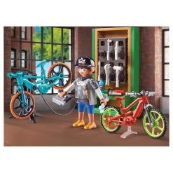 Le coffret atelier de réparation de vélos – Playmobil City Life 70674 contient : 1 personnage, 2 vélos et les principaux accessoires utilisés par les professionnels.