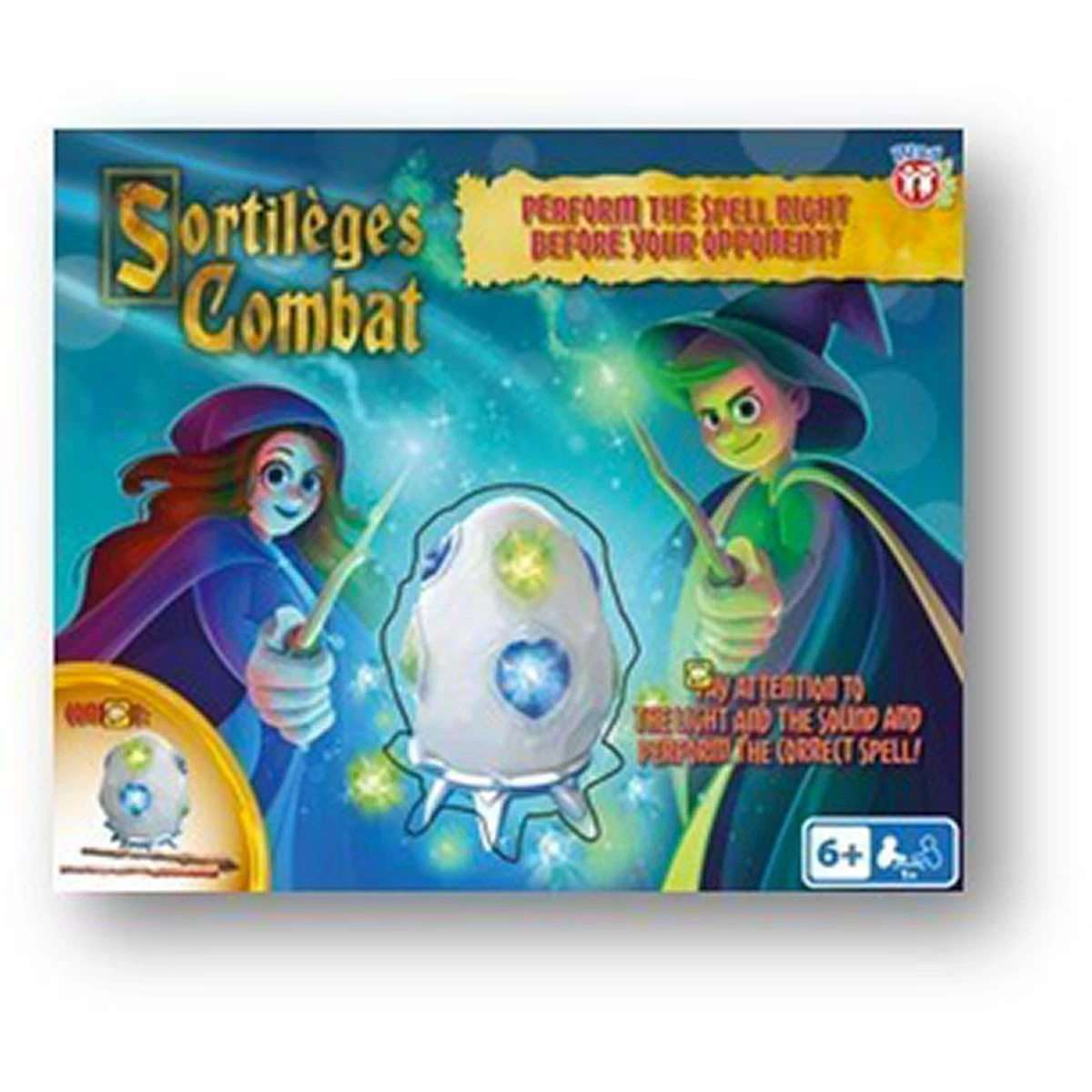 Apprenez, mémorisez et remportez le combat des sorciers avec Sortilèges Combat ! Chaque joueur doit mimer avec sa baguette le sort correspondant à la couleur annoncée le plus rapidement et correctement possible. S’il y parvient, il pourra éteindre une des pierres magiques de son adversaire. Pour cela, placez la Relique Millénaire sur une table au milieu de la pièce. Choisissez une baguette verte ou bleue et placez-vous face aux pierres magiques vertes ou bleues. Que la magie soit avec vous et que le meilleur gagne à Sortilèges combat d’IMC.