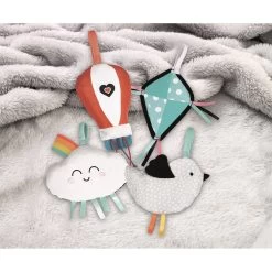 Ce tapis d’éveil contient 4 accessoires à suspendre, conçus pour favoriser l’exploration des sens : des rubans, des objets qui font du bruit et un hochet qui stimulent l’ouïe et le toucher et amusent l’enfant en captant son attention.