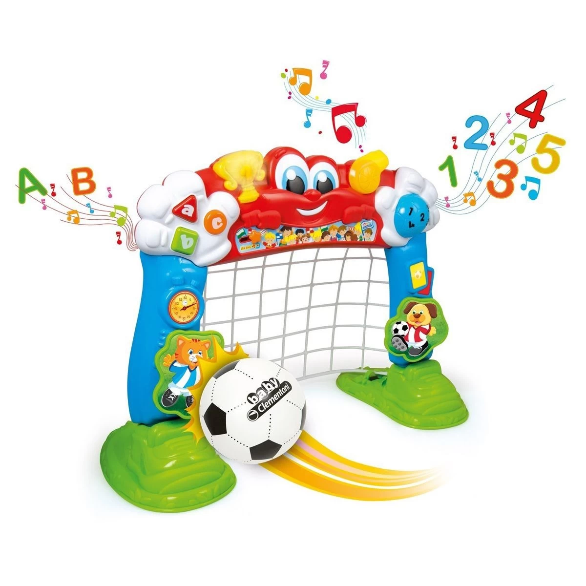 Avec Tiboot, Mon Premier But de Foot de Clementoni, votre tout-petit s’amuse à lancer son ballon dans la cage de football.